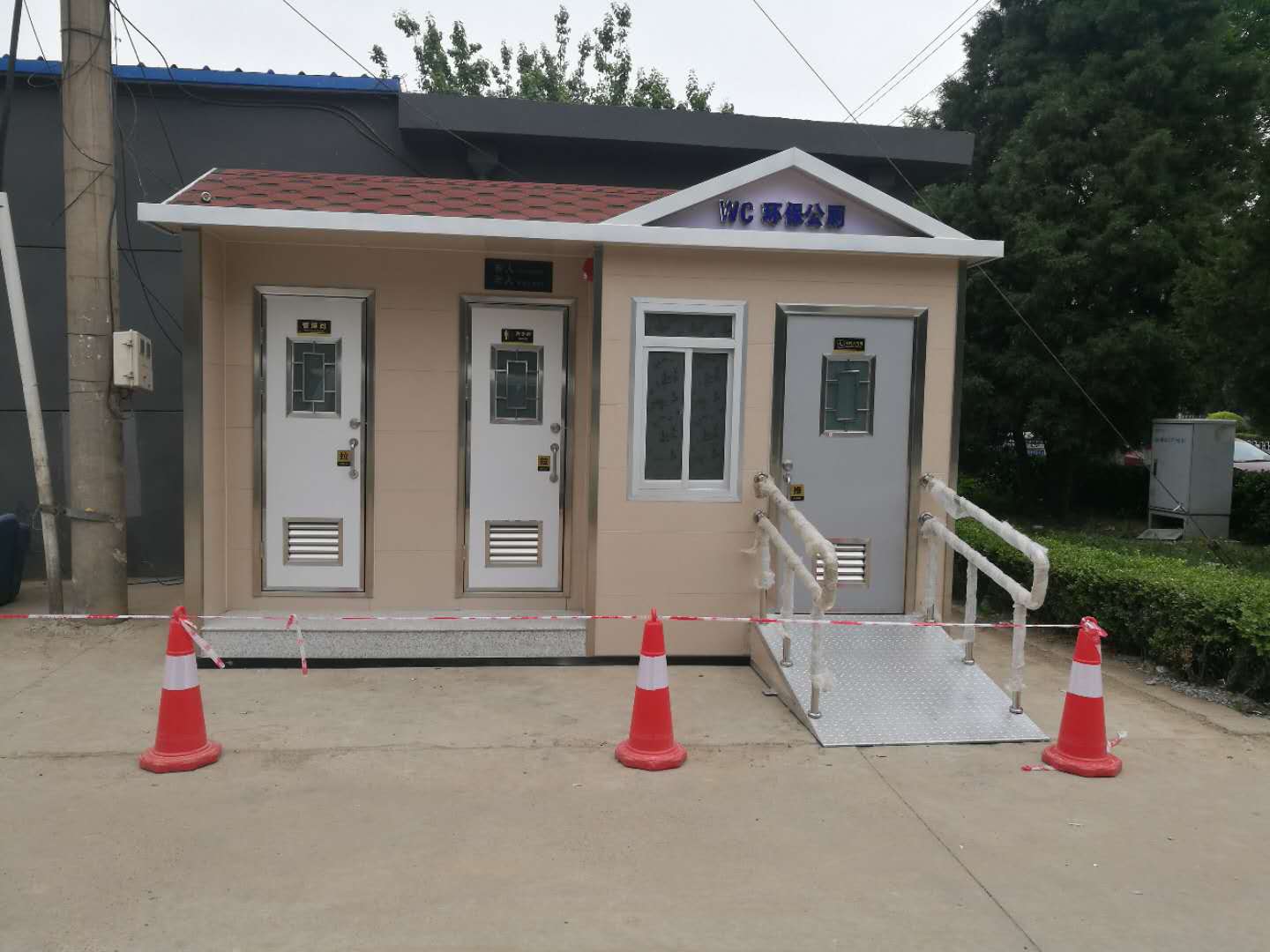 當然,移動廁所不會受到任何工作環(huán)境的限制,其外部結(jié)構(gòu)特別輕。整個顏色在搭配過程中特別合理,適合安裝在一些不同的城市街道或大型公共場所,尤其便于移動。移動廁所是由鋼焊接而成的框架結(jié)構(gòu)。通常,底部用槽鋼或工字鋼焊接,立柱用方鋼制成。在墻體的基礎上,安裝墻體材料,包括彩鋼板、金屬雕版、鋁塑板、防腐木等。框架式機構(gòu)可以滿足提升要求,可以移動挪威進行提升,因此被稱為移動廁所。本發(fā)明不受任何工作環(huán)境的限制,外觀結(jié)構(gòu)輕巧,配色合理,適用于城市街道、公園綠化、車站、碼頭、旅游景點、別墅區(qū)、新建住宅區(qū)、大型建筑工地、廣場、人口稠密的公共場所和繁華的商業(yè)街。移動式公廁具有可移動、可組合、便于運輸?shù)膬?yōu)點。此外,移動廁所的內(nèi)部配置高于普通固定廁所。