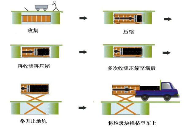 垃圾儲存、壓縮及寄存全部在地面以下,地面上沒有垃圾散落,對環(huán)境影響較小;垃圾壓縮后密度高,水份少,可避免汽車運(yùn)輸中的垃圾散落、污水滴漏現(xiàn)象,避免二次污染;
