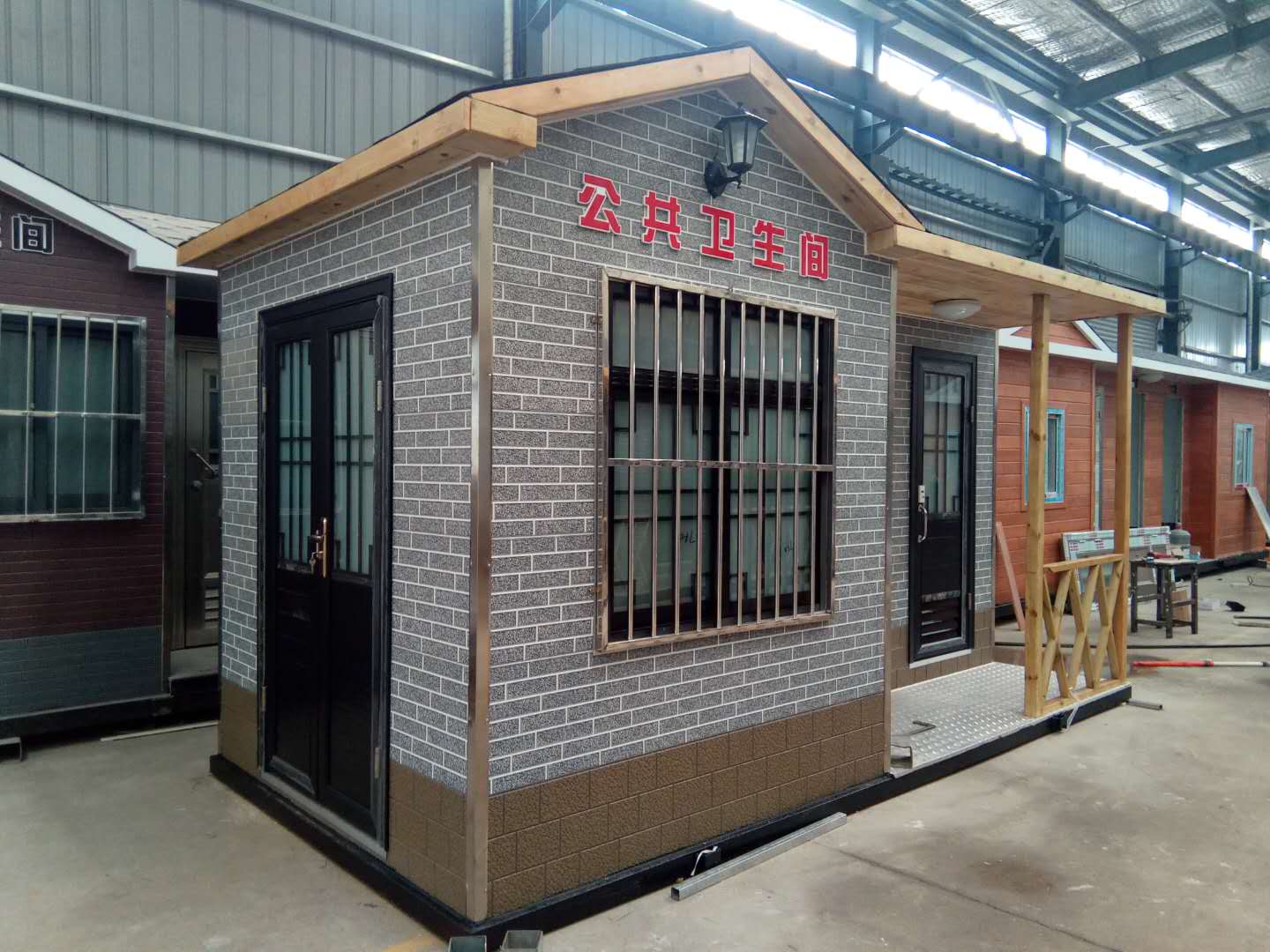 移動(dòng)廁所簡介及制作方法:1、房體結(jié)構(gòu): 采用輕鋼龍骨結(jié)構(gòu),鋼材全部使用標(biāo)準(zhǔn)鍍鋅鋼材。根據(jù)房體的大小特選用國標(biāo)方管(50-100)焊接而成。鍍鋅管厚度為2.8mm,方管經(jīng)過除銹后進(jìn)行鍍鋅、防腐處理,這樣就會(huì)延長廁所使用壽命.2、墻體: 墻板采用金屬雕花板,金屬雕花板是保溫、隔熱、環(huán)保、阻燃、防雨、防凍、隔音、抗震等...