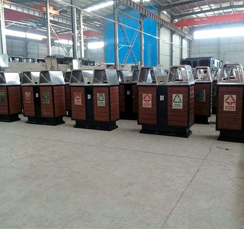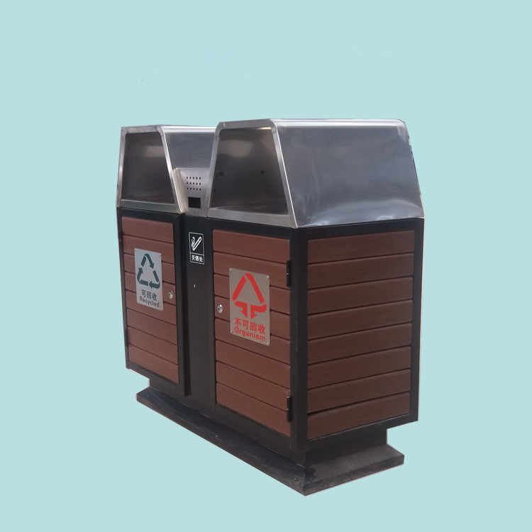環保分類鋼木垃圾桶桶身可選用實木、防腐木、塑木等環保材料;內桶采用加厚鍍鋅板,防腐防銹能力強;桶架采用冷軋鋼板,經過酸洗除銹噴粉高溫烤漆處理。整體美觀大方、堅固耐用。工廠直銷可定制,歡迎來電咨詢:13